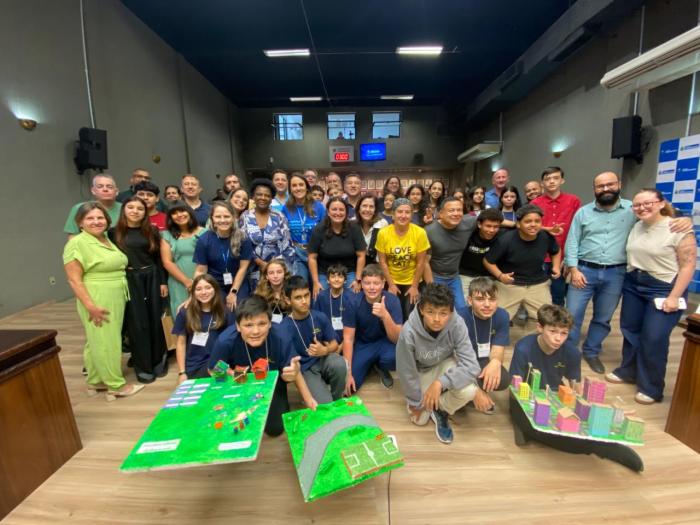 Vereadores recebem alunos e conhecem o Projeto 4E antes da sessão plenária.